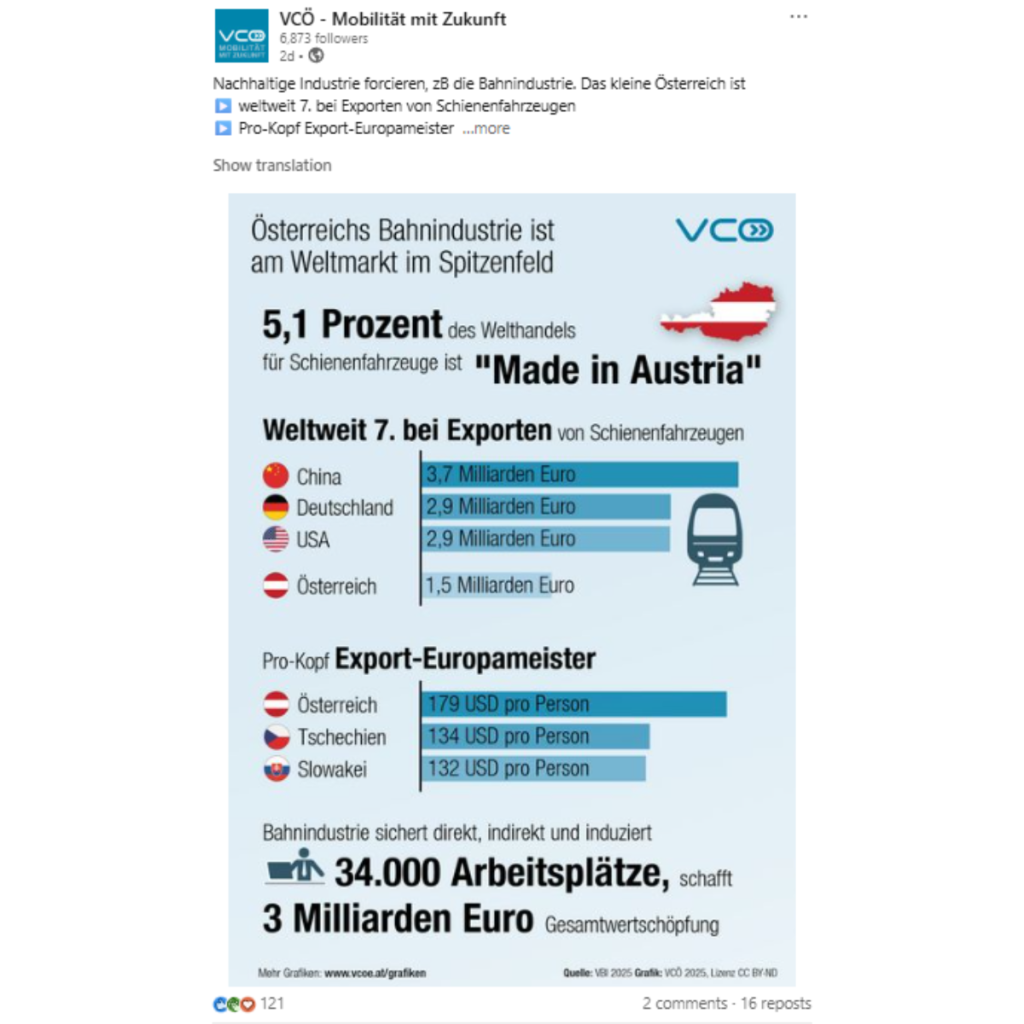 When I came across the infographic on Austria’s railway sector shared by VCÖ – Mobilität mit Zukunft on LinkedIn, I was struck by how impressive—and unexpectedly revealing—it was.